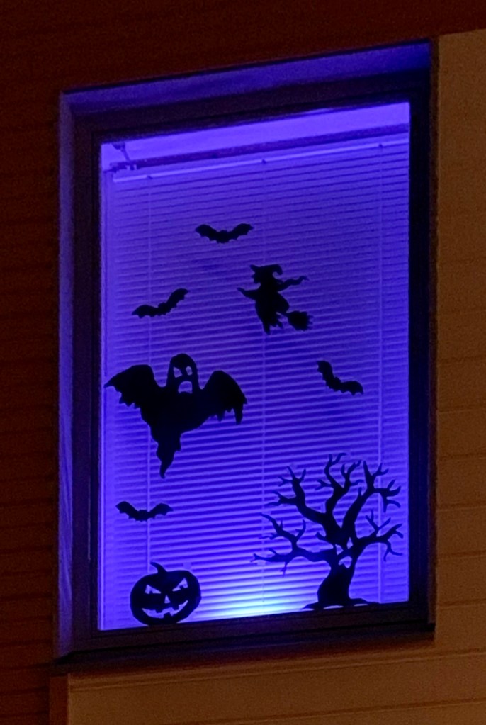 This year we decided with my 6 and a half year old son to make a Halloween project. We decided to make a window display, with scary figures cut out of paper and a Raspberry Pi providing lighting for it.