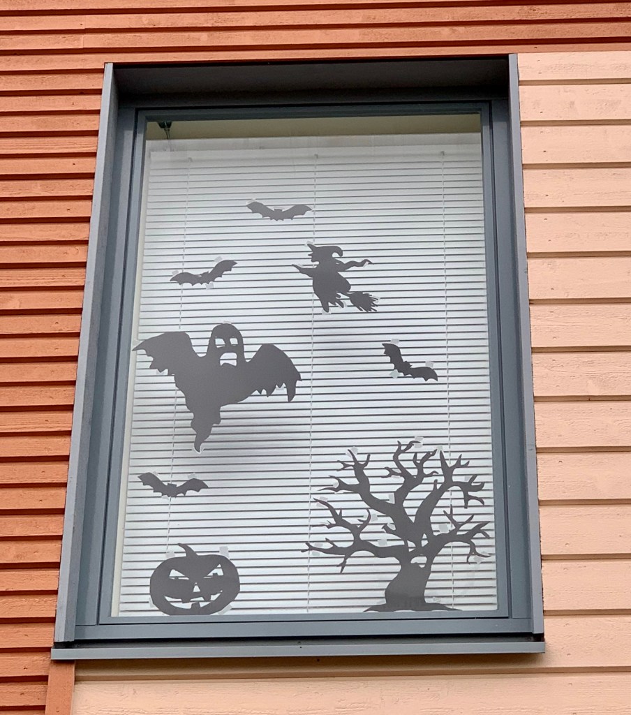 The cut out pieces were then attached to his window. This is how it looks during daylight.